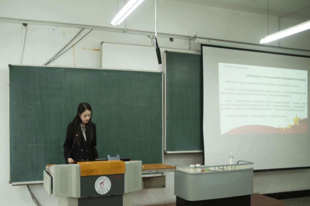 最后由创新创业教育学院张书桓同学以“推普助力乡村振兴”为切入点,讲述凉山彝族自治州支教教师何林静通过教授普通话突破语言障碍、推动教育发展的故事。结合自身经历,他分享在大兴安岭塔河县开展推普调研时的经历,呼吁青年以萤火微光汇聚照亮田野的星河,让青春在基层推普实践中闪耀。