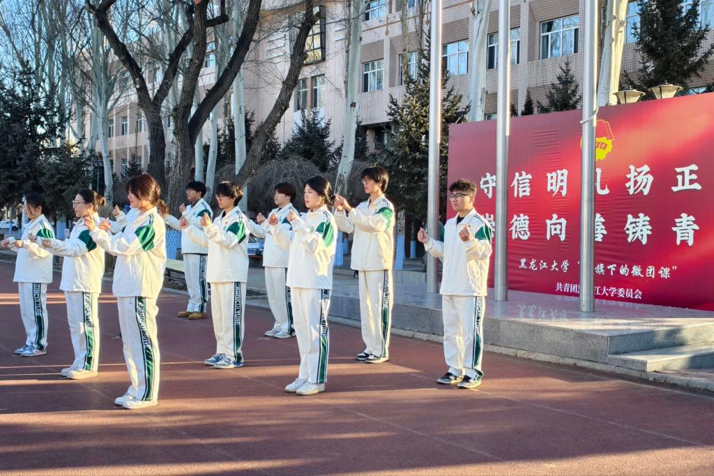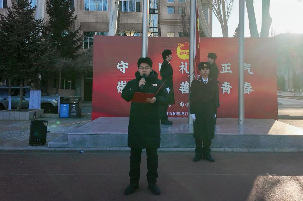 为深入学习贯彻习近平新时代中国特色社会主义思想,深入贯彻落实党的二十大和二十届历次全会精神,将爱国主义教育与诚信建设深度融合,强化广大团员青年使命担当,以履约践诺的实际行动涵养清风正气,3月16日早7时,现代农业与生态环境学院在联通广场开展黑龙江大学“国旗下的微团课”暨“守信明礼扬正气,崇德向善铸青春”主题升旗仪式。出席本次活动的有现代农业与生态环境学院党委书记金鹏、院长兴旺、党委副书记穆丹阳、副院长路运才、副院长焦晓光,学院教师党员代表,全体团委老师,学生党员代表,2024级、2025级全体同学。升旗仪式由现代农业与生态环境学院团委副书记汤博宇主持。