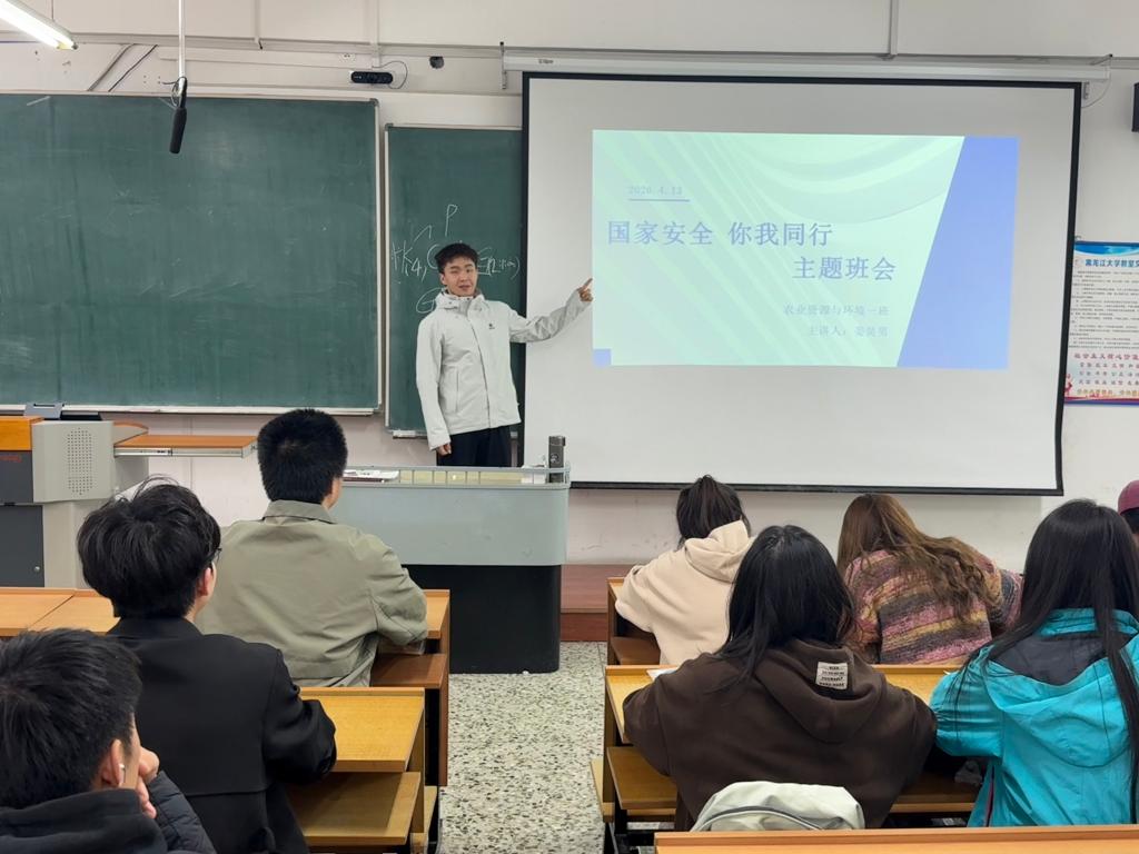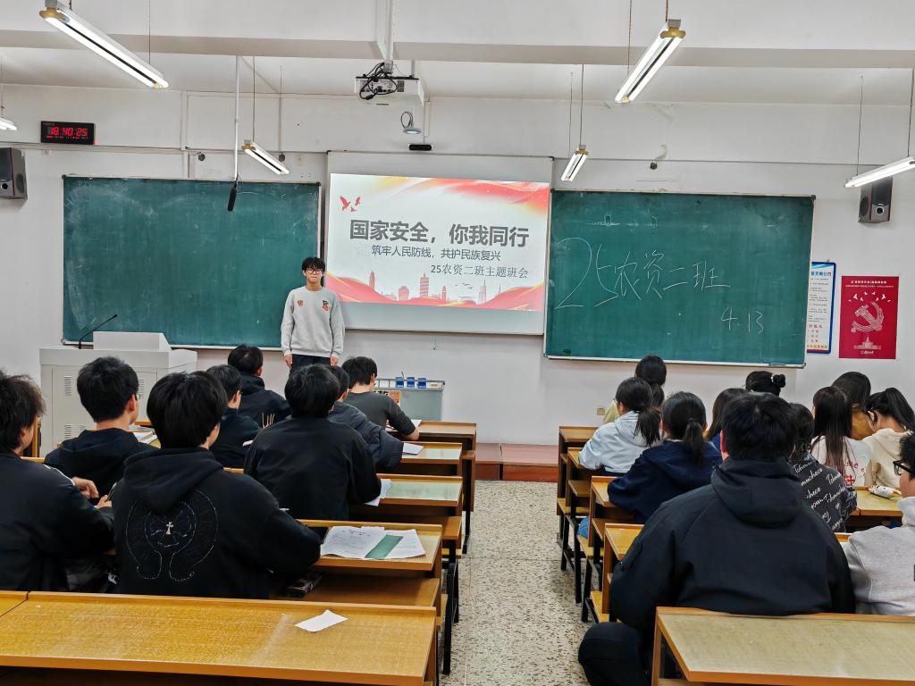 为深入学习贯彻总体国家安全观,切实增强青年学子的国家安全意识与法治观念,筑牢校园安全防线,现代农业与生态环境学院2025级全体班级组织开展“国家安全,你我同行”主题班会活动。活动紧扣新时代国家安全内涵,结合大学生学习生活实际,以多样化形式推动国家安全教育入脑入心。
