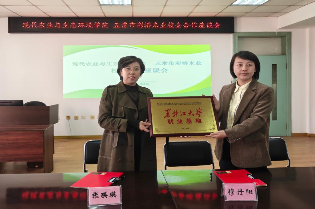 为积极响应国家关于深化产教融合、促进高校毕业生就业创业的号召,充分发挥高校的人才培养优势和企业的实践平台作用。黑龙江大学现代农业与生态环境学院与五常市彩桥米业有限公司校企合作座谈会暨就业基地签约仪式于4月23日在农学楼321会议室举行。