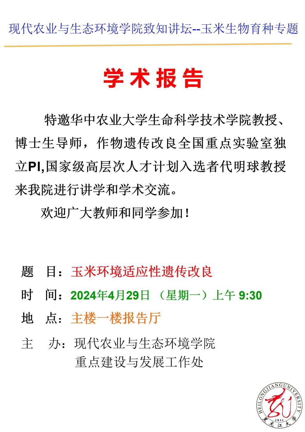 现代农业与生态环境学院致知讲坛暨玉米生物育种专题三