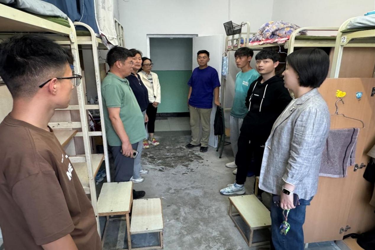 走访过程中,学院领导及老师首先对新同学们的到来表示热烈欢迎,并与同学们进行了亲切交流,了解他们的住宿条件、饮食习惯和适应情况,叮嘱要遵守宿舍管理规定,确保拥有一个安全、舒适、整洁的居住环境。同时认真倾听同学们的心声和需求,耐心解答他们的问题,鼓励同学们要确立未来目标,制定合理的学习规划,加强自我管理,不虚度大学时光,保持良好的心态,共同营造温馨和谐的寝室文化,以积极向上的精神面貌融入大学生活。