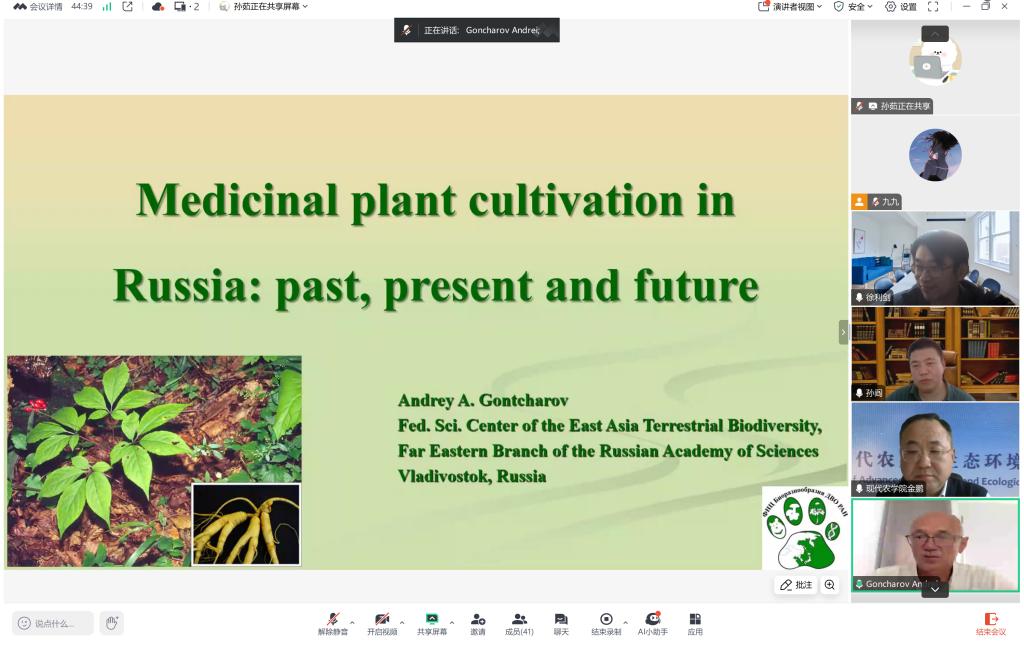 为进一步提升学生的学术素养,增强对学科前沿动态的了解,提高其对学术前沿的关注,黑龙江大学现代农业与生态环境学院积极响应教务处号召,组织开展学生“国际学术周”活动。学院于2025年1月17日10:00-11:00进行题为“俄罗斯药用植物种植:历史和前景”的线上专家学术讲座,邀请嘉宾为俄罗斯科学院通讯院士,俄罗斯科学院远东分院联邦生物多样性科学中心主任安德烈·阿纳托利耶维奇·冈察洛夫教授。现代农业与生态环境学院党委书记金鹏主持本次讲座并对本次讲座专家进行介绍。学院院长兴旺教授、副院长焦晓光教授、各专业教师以及本科生、研究生共同参加了本次讲座。