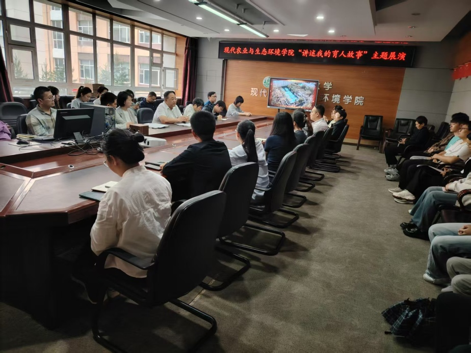 根据学校开展“教育家精神万里行”活动的通知要求,为展示学院教师立德修身、敬业立学、教书育人精神风貌,营造尊师重教良好氛围。现代农业与生态环境学院于6月5日在215会议室组织开展“讲述我的育人故事”展演活动,学院党委书记金鹏、党委副书记穆丹阳、学院教师和学生代表参加本次展演活动。