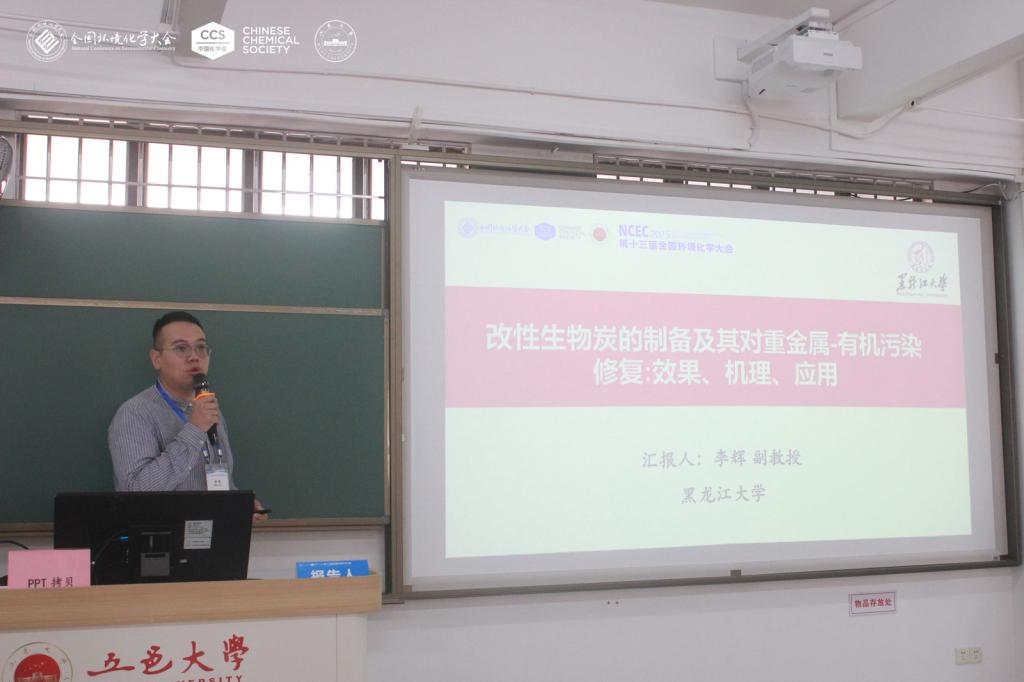 现代农业与生态环境学院李辉副教授应邀参会,并在生物炭环境化学与绿色工程实践分会场作了题为《改性生物炭的制备及其对重金属-有机污染修复:效果、机理、应用》的邀请报告。生物炭技术作为绿色可持续的环境修复材料,契合国家生态文明建设与农业绿色发展的战略方向。报告内容充实,逻辑清晰,兼具科学前沿性与实践应用潜力,引发了与会同行的广泛兴趣与讨论。此次作为邀请报告进行展示,不仅是对李辉及其团队科研水平的充分肯定,更是对我院在“现代农业”与“生态环境”交叉学科领域,特别是土壤污染防控与安全利用研究方向所取得成就的高度认可。