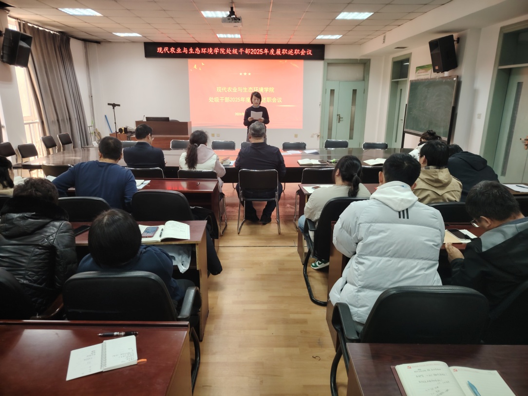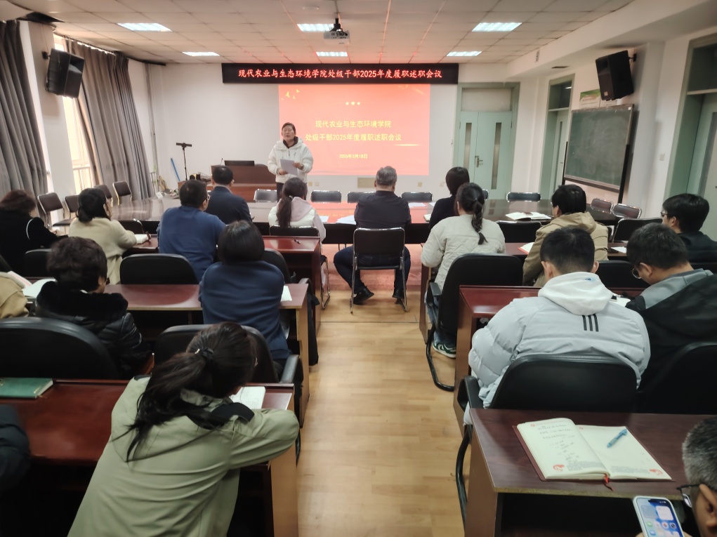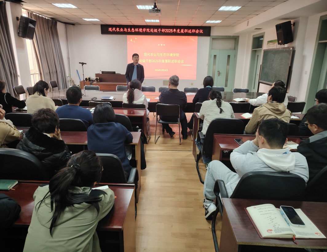 为落实《黑龙江大学2025年处级单位(领导班子)及处级干部考核方案》工作要求,持续强化学院领导班子和干部队伍建设,充分发挥年度考核在推动学院事业高质量发展中的导向与牵引作用,现代农业与生态环境学院于3月19日,在农学楼321会议室召开2025年度领导班子成员述职大会,学院全体教职工参加会议。