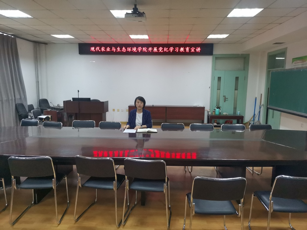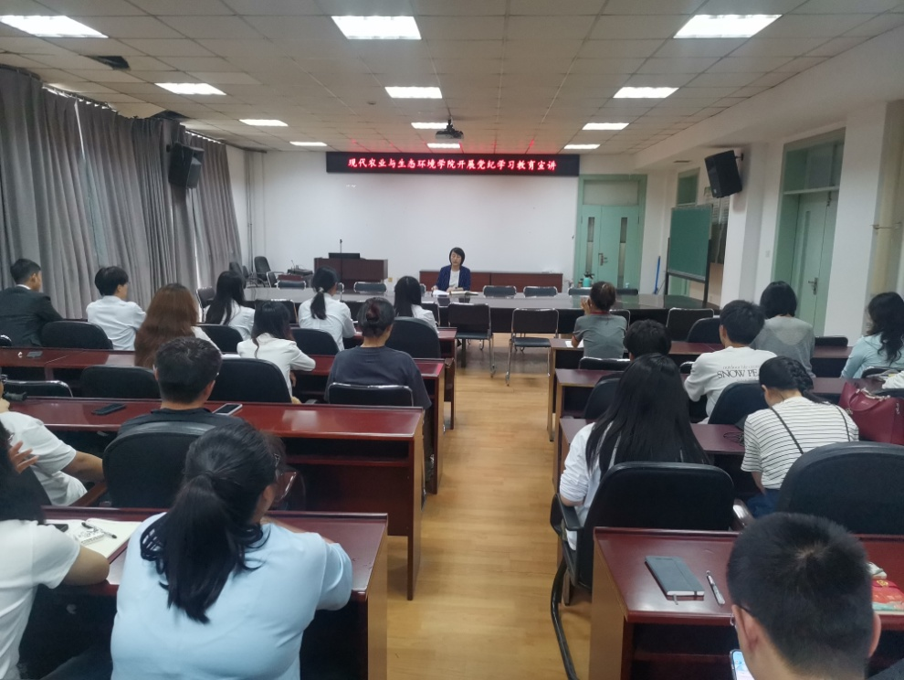 现代农业与生态环境学院为深入推进党纪学习教育,持续推进原原本本学《中国共产党纪律处分条例》。学院于6月14日由学院党委副书记穆丹阳为全院师生做《中国共产党纪律处分条例》解读和案例分析专题讲座。