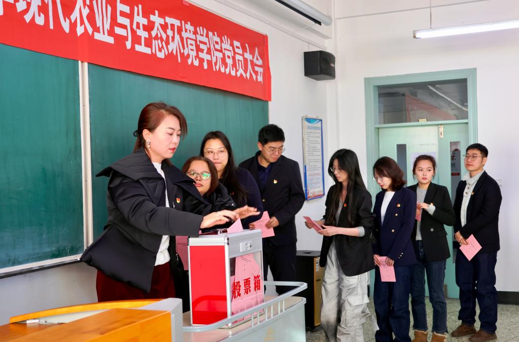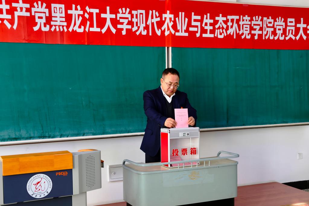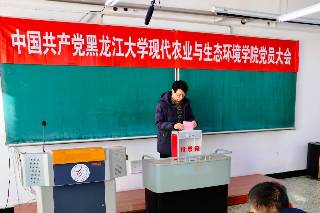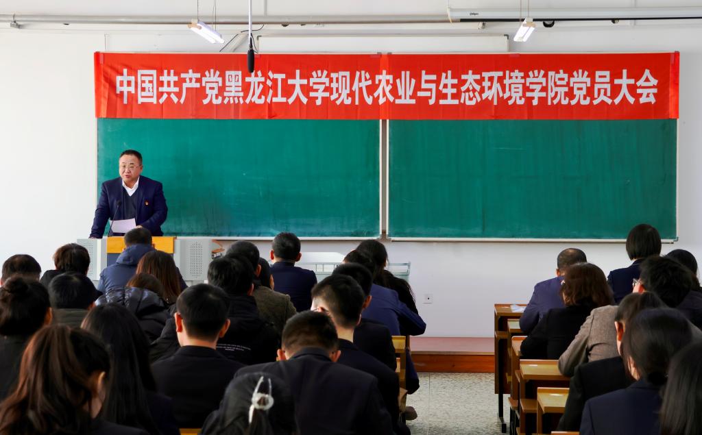 12月4日下午,中国共产党黑龙江大学现代农业与生态环境学院党员大会在农学楼716室召开。现代农业与生态环境学院所属10个党支部的139名师生正式党员参加会议,预备党员代表列席会议。大会由现代农业与生态环境学院党委书记金鹏同志主持。