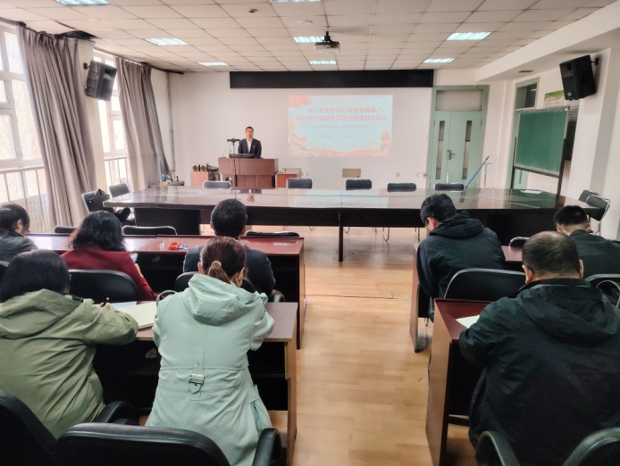 为巩固党纪学习教育成果,深入贯彻中央八项规定精神学习教育,推进作风建设常态化长效化,现代农业与生态环境学院党委按照学校《关于开展黑龙江大学深入贯彻中央八项规定精神学习教育宣讲的通知》要求,于5月7日下午在农学楼321会议室组织召开理论宣讲活动。学院特邀马克思主义学院副院长文记东作主题讲座。学院党委副书记穆丹阳主持会议,学院师生党员代表参加学习。